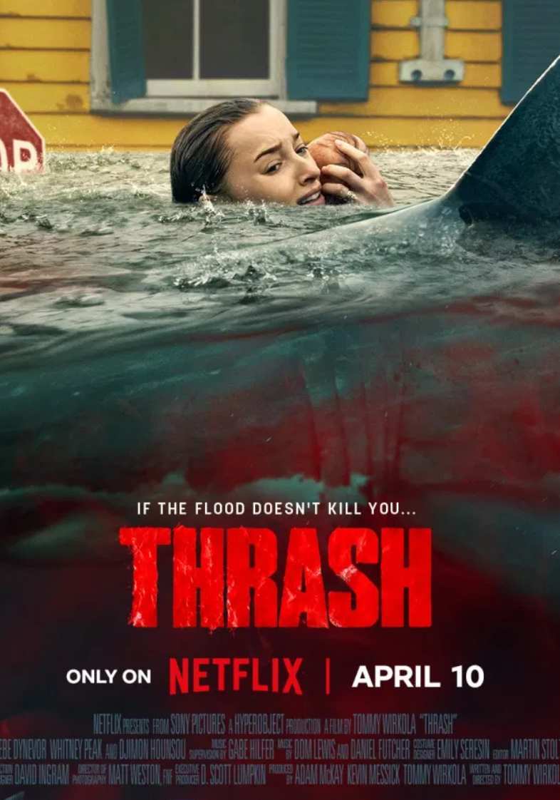 《狂鲨风暴》(Thrash)是 Netflix4 月 10 日刚上线的澳美合拍灾难惊悚片,由《死亡之雪》导演托米・维尔科拉执导,菲比・黛内芙、惠特尼・皮克、杰曼・翰苏主演,全程 100 分钟高能无尿点微博。故事聚焦美国东海岸沿海小镇,五级飓风突袭引发超级风暴潮,整座小镇瞬间被洪水吞没,主干道变河流、建筑泡积水、电力全断。比天灾更狠的是 —— 深海公牛鲨随洪水涌入城区,在浑浊水里隐蔽偷袭,把人类生活区变成致命狩猎场。幸存者困在屋顶、车内、居民楼,既要扛狂风暴雨、漂浮残骸、电线漏电,又要防鲨鱼突袭,每一步都可能送命。影片最绝的是压迫感拉满:黑暗中只能靠手机闪光电照明,鲨鱼撞墙声、惨叫声、飓风呼啸声交织,鲨口逃生桥段紧张到攥紧拳头。角色塑造也真实:菲比・黛内芙演的孕妇临产被困车内,边扛阵痛边求生;杰曼・翰苏的海洋研究员当 “智慧核心”,带大家找生路;惠特尼・皮克演的 “武力担当” 果敢却也会露脆弱,人性善恶在绝境里拉满。没有开挂英雄,只有普通人拼尽全力活下来的挣扎。全程节奏不拖沓,灾难场面视觉冲击足,最后还藏着温暖的生命力量,周末放松看这部双杀式生存惊悚,真的很过瘾。