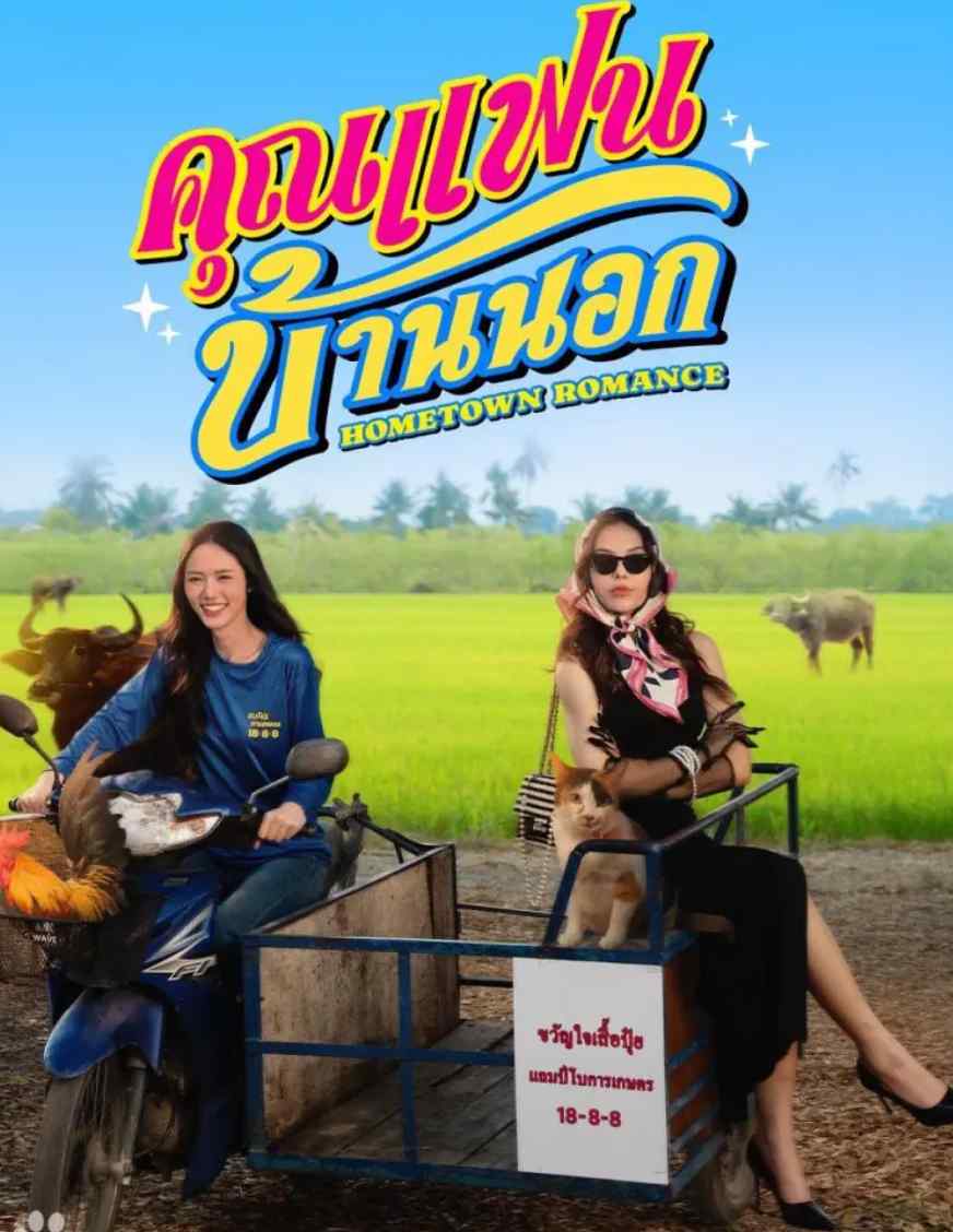 《乡村恋人》(Hometown Romance)是 2026 年刚开播的一部泰式甜宠百合剧,风格轻松搞笑,特别适合想放松看剧的朋友。整部剧只有8 集,讲的是傲娇都市大小姐和接地气乡村富婆的爱情故事。女主角 Si 是个从小泡咖啡馆、吃鱼子酱的豪门千金,过得特别精致。结果家里公司要传给妹妹,她不服气,就跑到乡下农场想锻炼自己,证明给爸妈看她更适合当 CEO。可她刚到乡下,就撞上了女主 Klao。Klao 看着像个普通农妇,天天穿件沾肥料的衬衫,跟鸡鸭猪作伴,但其实是当地大地主。两人一见面就很戏剧性,Klao 直接对 Si 说:“我要跟你结婚。”Si 一开始完全受不了,觉得自己怎么可能跟个 “农夫” 在一起,生活习惯差太多了。但慢慢相处下来,她被 Klao 的直率、真诚,还有乡村里简单温暖的氛围打动。从一开始嫌弃,到后来天天从曼谷开车往乡下跑,整个人都变了,高脚杯换成鱼露瓶,精致生活也抛到脑后。整部剧节奏轻快,笑点很密集,就是看傲娇大小姐如何被乡下 “糙” 姑娘一步步收服,反差感特别强。没有太多狗血虐心的桥段,主打一个轻松、治愈、甜,双女主互动很自然,看得人嘴角忍不住上扬。
